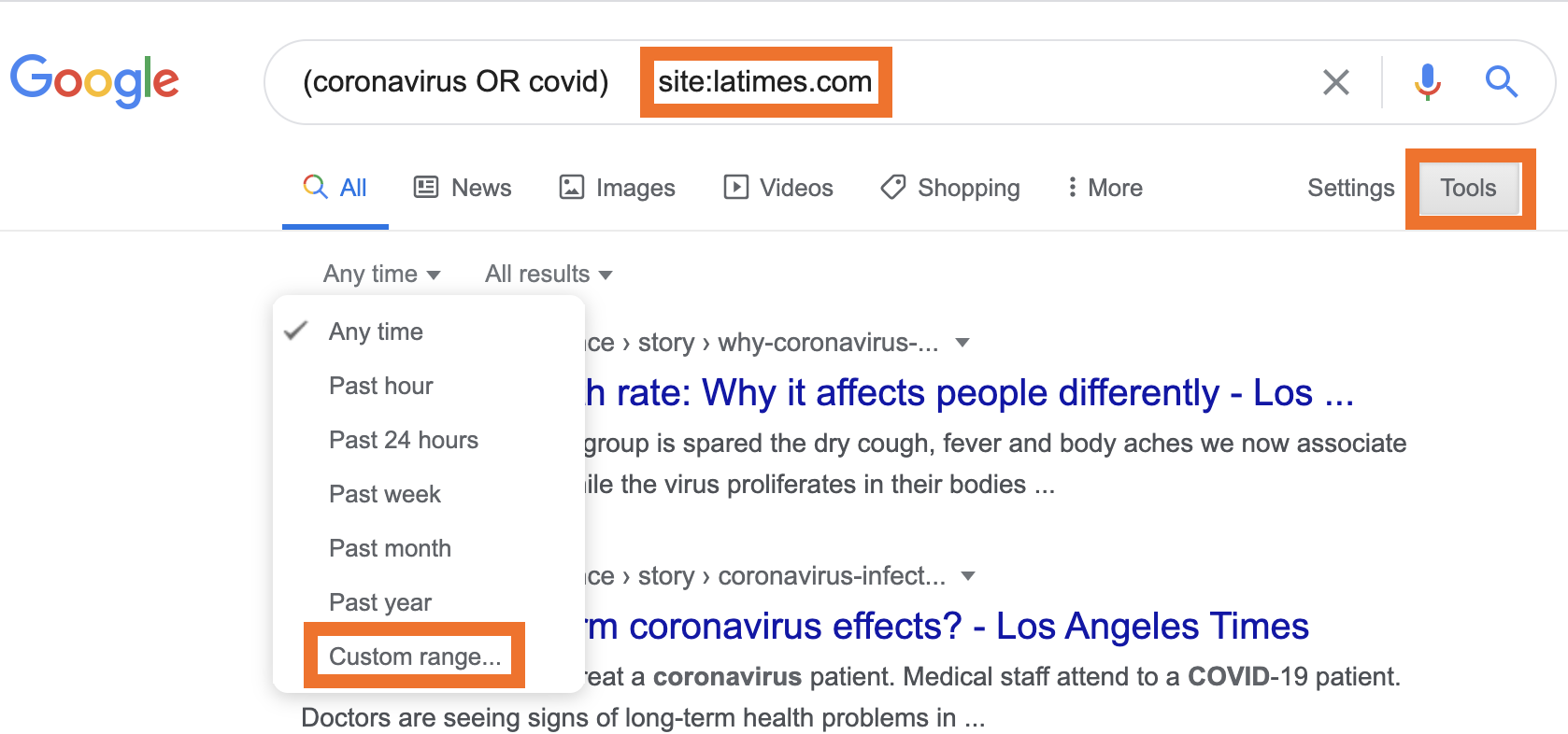 - Use site: to restrict searches to a particular news source